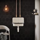 Udslagsvasken har en sort PVC-kant, der beskytter kanten og giver et tydeligt visuelt udtryk. Med vægmontering får du mere gulvplads, og den udvidede stænkskærm sikrer, at vandet bliver, hvor det skal. Vasken leveres komplet med monteringssæt og afløbssæt inklusive prop og kæde, så du hurtigt kan komme i gang.