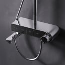 Brusesystemet har en praktisk omskifter, så du nemt kan vælge mellem at fylde badekarret eller tage et brusebad. Håndbruseren er udstyret med tre stråletyper, hvilket gør det muligt at tilpasse bruseoplevelsen – fra blid skylning til mere kraftfuld massage. Det hele styres let med ét greb, så du hurtigt kan justere både vandmængde og temperatur.