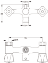 - Standard dansk tilslutning: Centerafstand på 150 mm og G 3/4" gevind