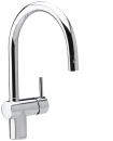 Osier-køkkenarmaturet kombinerer klassisk og moderne design. Den blanke kromoverflade og det enkle formsprog passer ind i både nye og eksisterende køkkener. Armaturet er lavet i messing og har fleksible tilslutningsslanger, hvilket gør monteringen let.