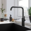Armaturet passer ind i de fleste køkkener, hvor der er brug for et enkelt og stilrent udtryk. Den matte sorte overflade i messing er nem at rengøre og modstandsdygtig over for daglig brug. Med én-grebs betjening kan du hurtigt justere vandmængde og temperatur, mens svingtuden giver dig ekstra arbejdsplads.