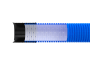 Den dobbelte vægkonstruktion kombinerer en blå korrugeret yderside med en glat sort inderside. Det giver både høj slagstyrke og lav indre friktion, så vandet hurtigt kan ledes væk. Røret er fuldperforeret hele vejen rundt for optimal vandgennemtrængelighed og kan klare spuling med op til 120 bar. Det er velegnet til både landbrug, byggeprojekter og infrastruktur, og passer til standard fittings.