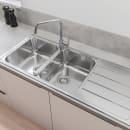 Med to kummer på hver 340 x 420 x 190 mm får du masser af plads til både opvask og tilberedning. Den integrerede afløbsbakke beskytter bordpladen og gør det nemt at tørre gryder og køkkenredskaber. Vasken kan vendes, så du selv vælger, hvilken side afløbsbakken skal være på.
