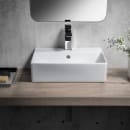 Håndvasken er fremstillet i porcelæn/keramik og har et enkelt, firkantet design med tynde kanter, der får bassinet til at virke større. Den kan både vægmonteres og placeres på en bordplade, så du får fleksible muligheder ved installation. Med hanehul og overløb er den klar til montering af armatur og afløb.