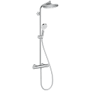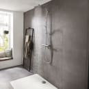 Brusesættet er designet til at gøre hverdagen nemmere. Den store hovedbruser giver en blød regnstråle, mens håndbruseren har to indstillinger, så du kan tilpasse vandstrålen efter behov. Termostaten sørger for stabil temperatur og ekstra sikkerhed med skoldningsspærren ved 40 °C. QuickClean-funktionen gør rengøringen enkel og forlænger sættets levetid.