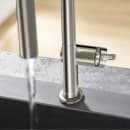 Med dette køkkenarmatur i rustfrit stål fra Hansgrohe får du en løsning, der kombinerer funktionalitet og moderne design. Armaturet er udviklet til dig, der ønsker ekstra bevægelsesfrihed og nem håndtering ved køkkenvasken, uanset om du skal skylle grøntsager, fylde store gryder eller rengøre vasken.
