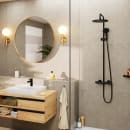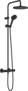 Hansgrohe Vernis Blend 240 brusesæt i mat sort er et komplet brusesystem, der kombinerer moderne design med praktiske funktioner til dit badeværelse. Systemet består af en stor rund hovedbruser, en fleksibel håndbruser med to stråletyper, termostatstyring og en robust bruserstang.