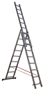 Stigen har 3 sektioner med 9 trin i hver, hvilket giver dig mulighed for at tilpasse længden efter behov. Takket være den kraftige stigefod og skridsikre gummiklodser står stigen stabilt, uanset om den er opstillet frit eller lænet op ad en væg.