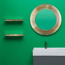 Her får du en guld hylde, der giver dig ekstra opbevaringsplads uden at tage fokus fra rummets øvrige indretning. Hylden er lavet i slidstærkt PMMA-akryl og er designet af Ludovica og Roberto Palomba for Kartell by Laufen.
