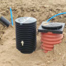 OBS: Brønden er beregnet til Ø32 mm PEM-rør. Kontroller altid, at dit rør passer til de indbyggede tilslutninger.