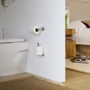 Her får du en diskret toiletrulleholder i blank krom, der passer ind i de fleste badeværelser. Den enkle form gør, at holderen næsten forsvinder, når der er toiletpapir på, og den blanke overflade er nem at holde ren. Holderen er 172 mm bred, 74 mm dyb og 55 mm høj, så den fylder minimalt på væggen.