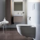 Med soft close-funktionen lukker både sæde og låg lydløst og roligt, så du undgår smæk og unødvendig slitage. Quick release-beslaget gør det let at tage sædet af, når det skal rengøres – helt uden brug af værktøj. Det slanke design giver et diskret og stilrent udtryk, der matcher resten af Laufen Pro-serien.