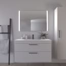 Dette firkantede spejl fra Vega-serien er et praktisk valg til badeværelset, hvor du har brug for både funktionelt og behageligt lys. Spejlet måler 100 x 70 cm og har to integrerede LED-lysfelter, der kan justeres i styrke med et enkelt tryk på touch-feltet. Det giver dig mulighed for at tilpasse belysningen, så den passer til både morgenrutiner og aftenbrug.
