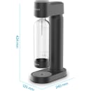 Maskinen leveres med en BPA-fri flaske på 1 liter og en CO₂-cylinder, der rækker til op til 60 liter danskvand. Den kompakte størrelse gør det let at opbevare maskinen, og den er nem at rengøre efter brug. Sikkerhedsventilen sørger for automatisk trykudligning, så du får en tryg oplevelse hver gang.
